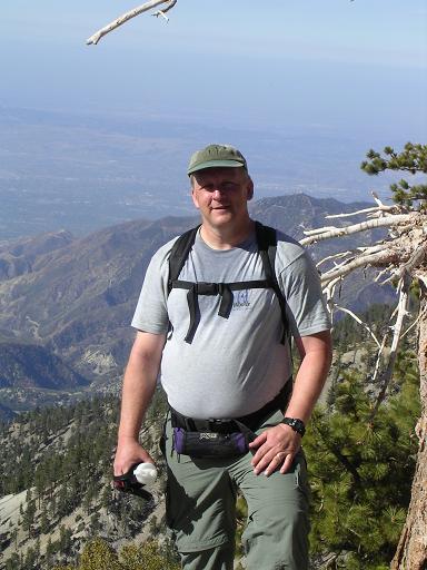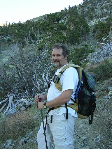 I hadn't been to Mt. Baldy in 28 years: I camped on top of the mountain on the evening of America's Bicentennial - July 4, 1976! So when I arrived at the Manker Flat parking area, I wasn't exactly sure where to go. I approached a fellow hiker, Russ Manion, and told him of my plans. He said, "Don't go that way (dirt road under the ski lifts), I'll show you a much better route." And so we teamed up for the ascent via the Sierra Club Ski Hut and Baldy Bowl. We were together for the entire hike. Today was a good day: a new trail and a new friend. Thanks again, Russ! |