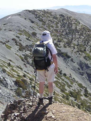 | Russ. Across the bowl you can see the Devil's Backbone trail which runs from Baldy Notch to the summit. |
