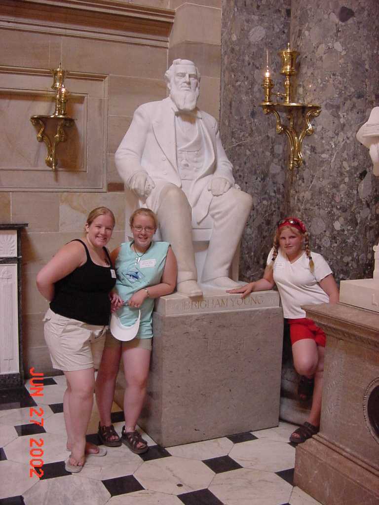 I am a member of the Church of Jesus Christ of Latter-Day Saints, also known as the Mormons. This is a photo of my daughters Cora, Hannah, and Emma in front of a statue of Brigham Young. This statue is in the statuary of the Capital building in Washington D.C. To learn more about my church, visit http://www.lds.org. |