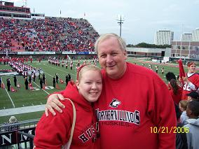 I attended Northern Illinois University from January 2006 to August 2008. I earned an MSEd in Instructional Technology. My daughter Hannah is a music education major there, and we often met for dinner or a malt before my classes. This photo is from our first NIU football game in October 2006. |