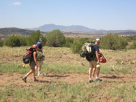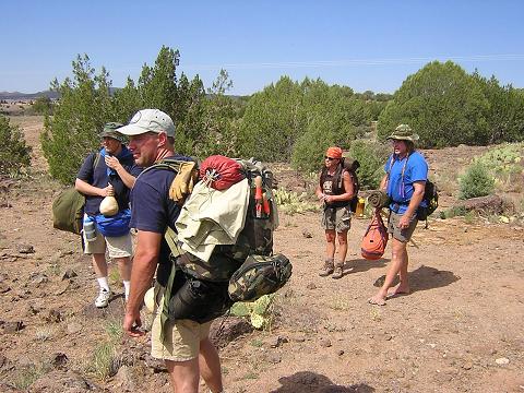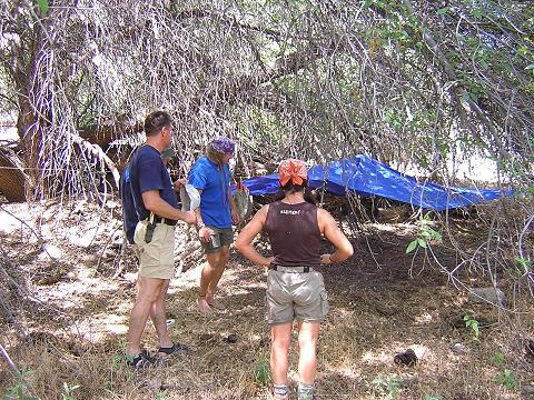 | Upon arriving at our base camp our first order of business was to set up a tarp shelter in case we were struck by monsoon rains, which are common in Arizona in July and August. |