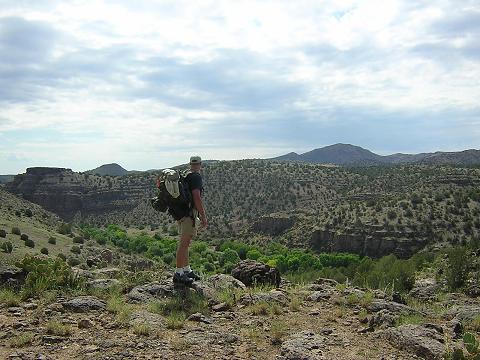| In the foreground is the trail which will lead us down to the river. |