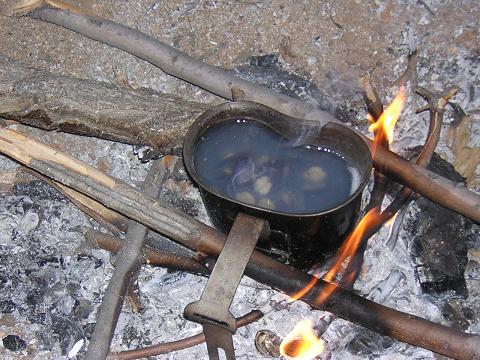 | A few words about Cody...This guy's the real thing. I have a lot of respect for Cody, not only as a survivalist but as an instructor. One comment he made on Sunday around noon was very telling: he said, "We have work to do. By now you are probably thinking, we could have left a couple of hours ago and it would have been fine with me. I've learned a lot and I think I have gotten my money's worth. But there is more to do." His comment taught me two things. First, he was right. We were getting tired. I noticed I was moving slower than the day before. Despite conscious efforts to stay hydrated, I think we were all suffering a little bit from dehydration. How can that happen when we are twenty feet from a river? It is a silent enemy. Every breath contributes to your dehydration. (I drank a lot of water during the day. Was I dehydrated from the night's sleep?) The low humidity dries your sweat before you can see it. You must be ever vigilant about it! Second, his comment showed an awareness of his audience and their well being. He has done this many, many times with many, many students. This level of understanding comes only with experience. Cody, I think you did a great job. | |