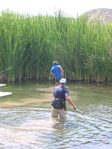 | Gathering seep willow for hand drill firemaking. |