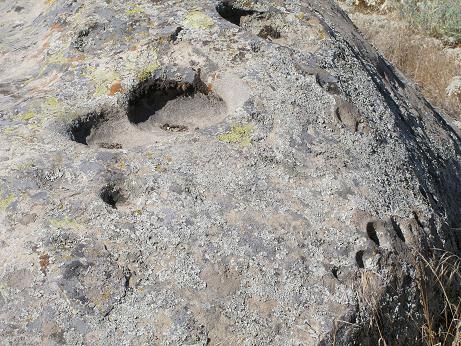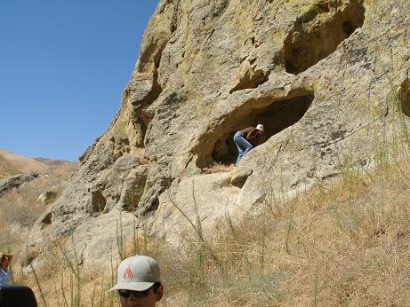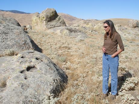 Cheryl is the education director at Wind Wolves. The holes in this large stone were used as metates for grinding grain. |