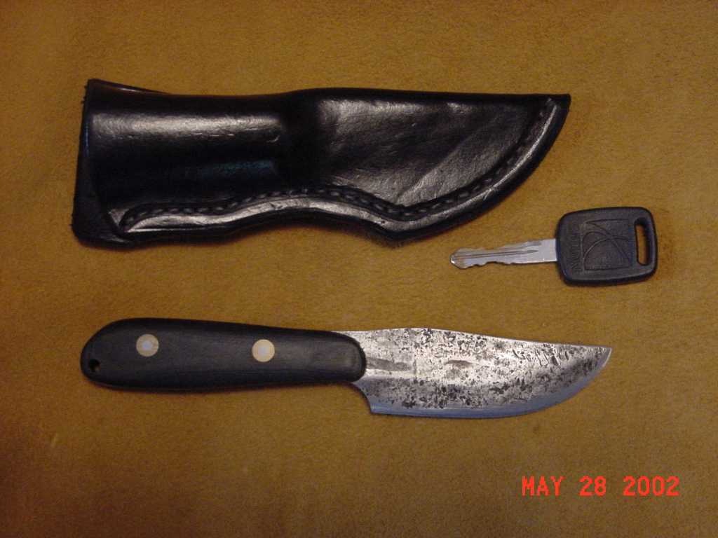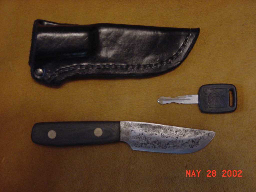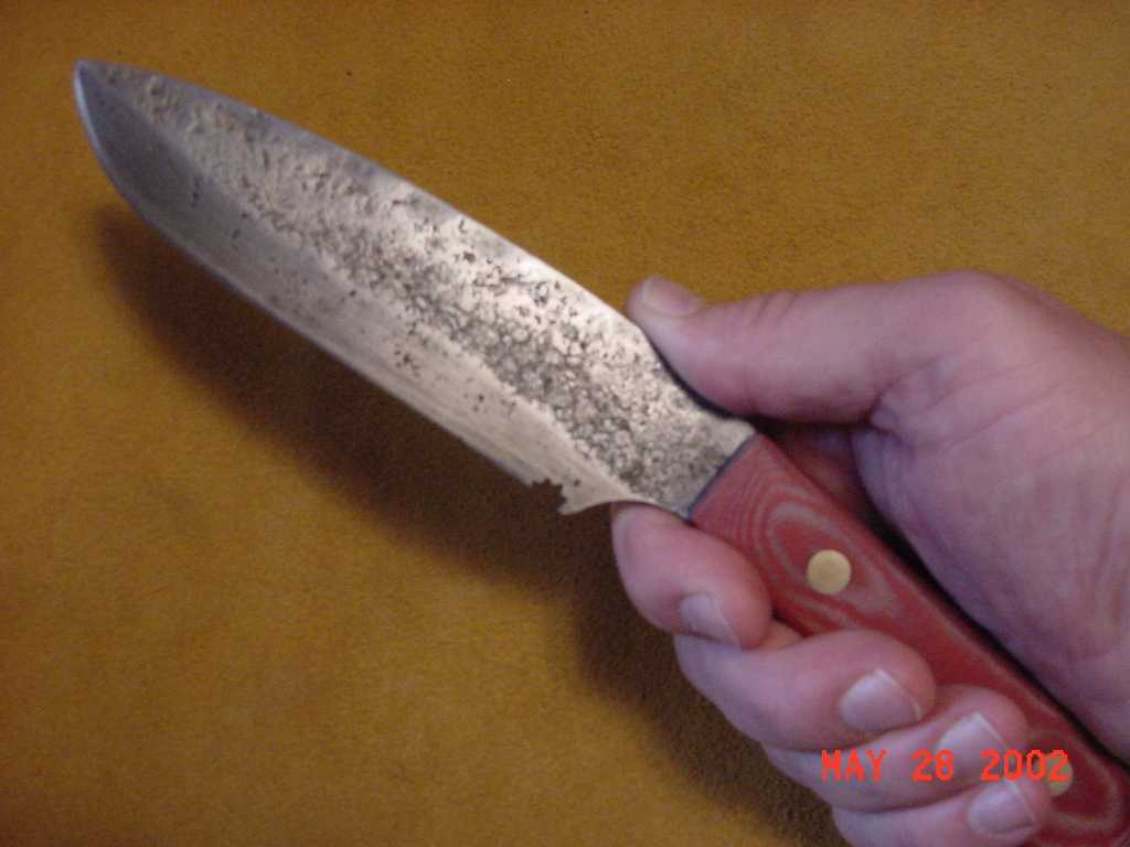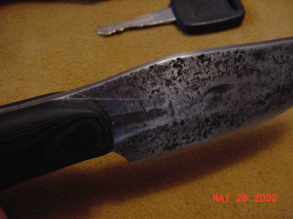 | This is a thinner blade. Still hammer forged. George and I refer to this as the kitchen knife. It just begs for the opportunity to slice through a steak! |