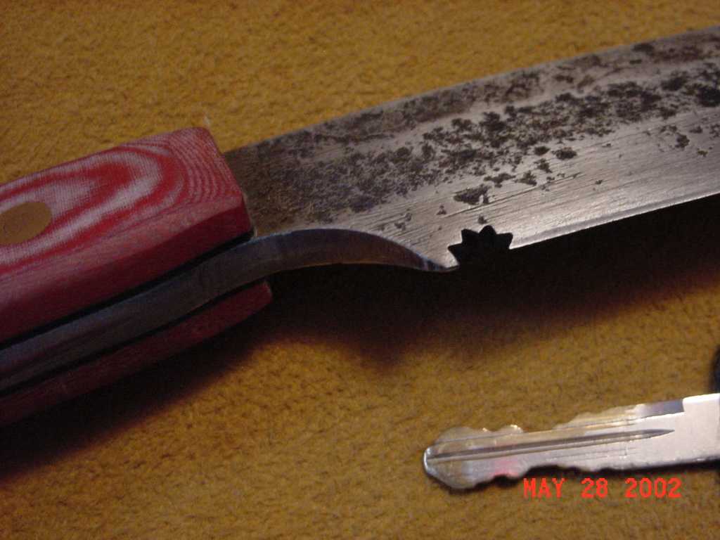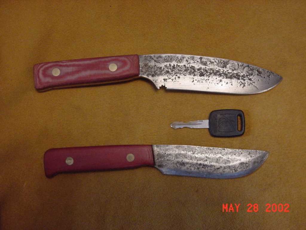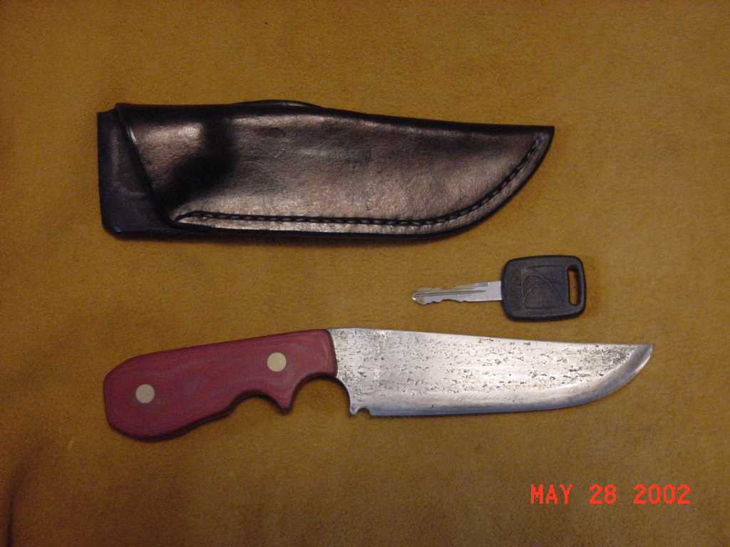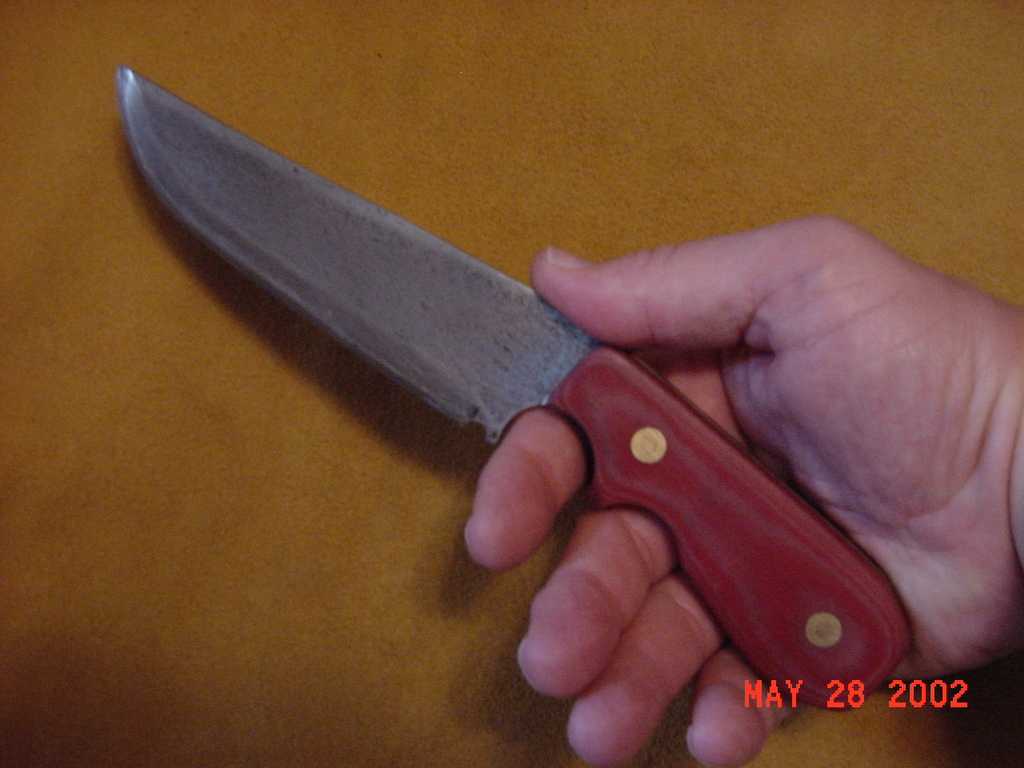 | This is a thinner blade. Still hammer forged. George and I refer to this as the kitchen knife. It just begs for the opportunity to slice through a steak! |