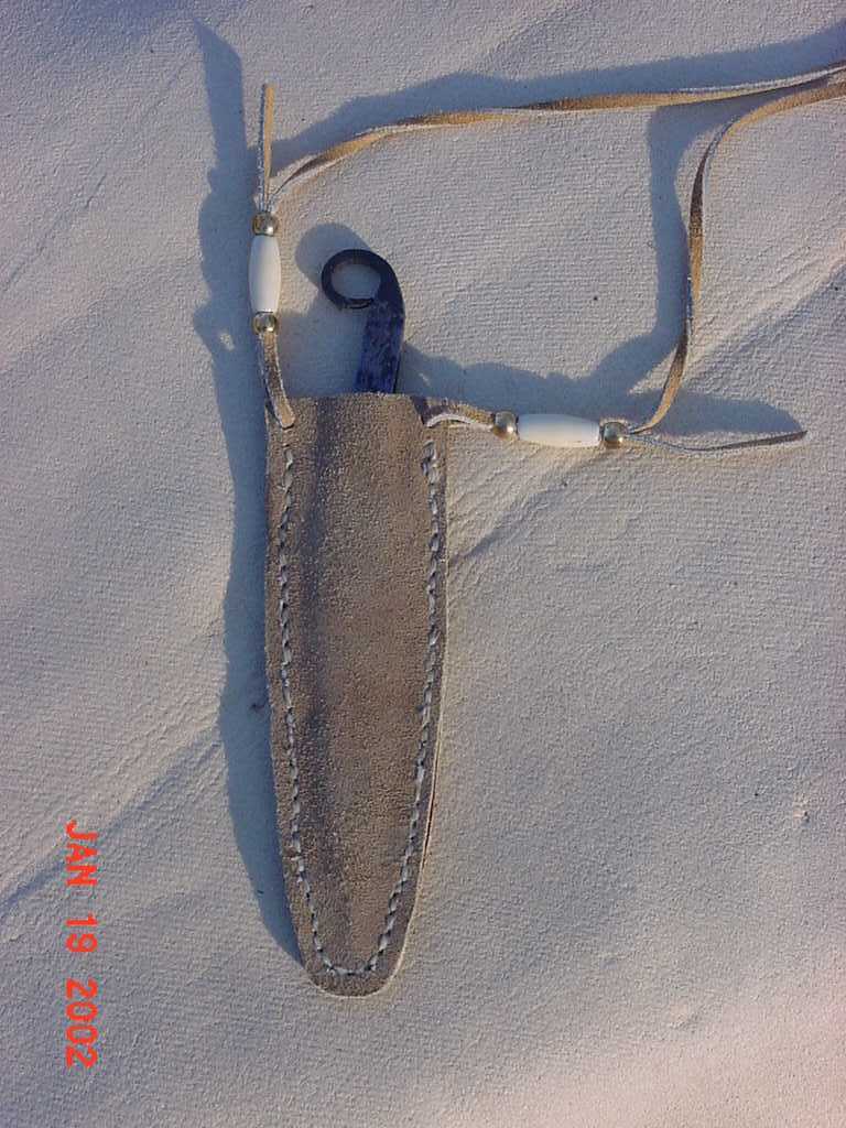 | Well, my initials aren't GAM, so I made a new sheath for it. I used suede so the sheath is very thin. Almost zero profile when worn under a shirt. |