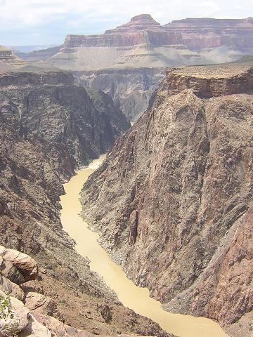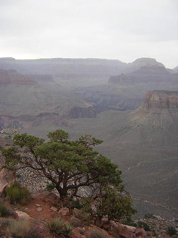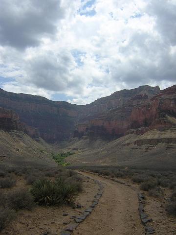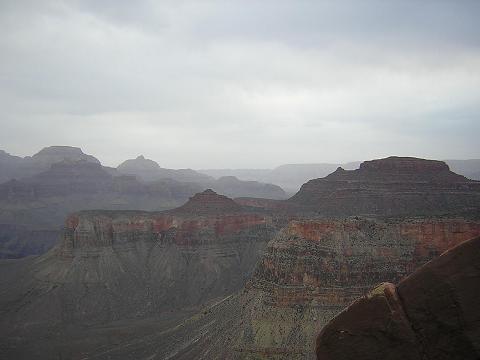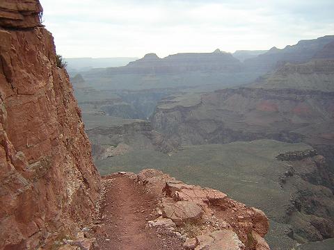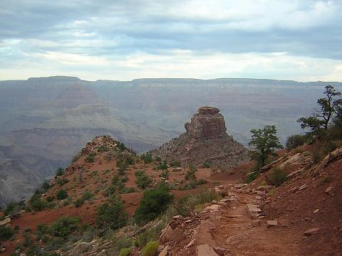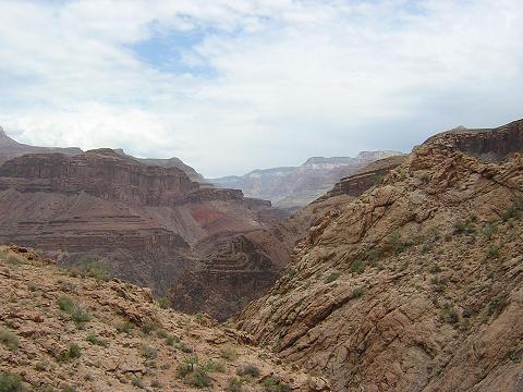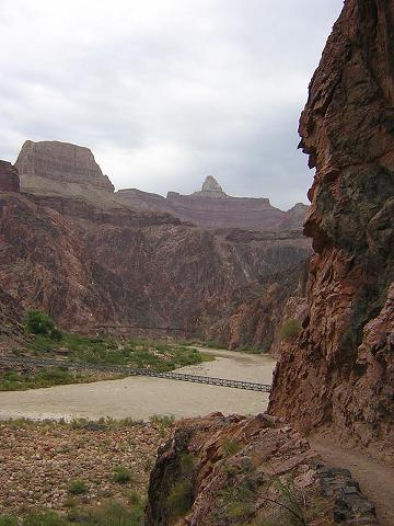 | In truth, I hadn't planned to go to the river. I was going to go part way down and take the Tonto trail over to the Bright Angel trail. But with these overcast skies, it seemed like a great opportunity to hike to the river. |