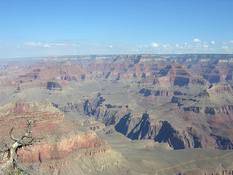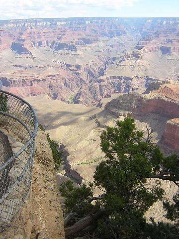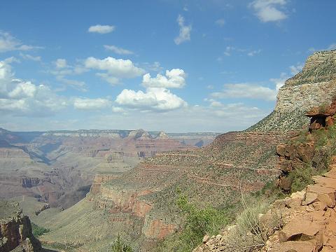 I went to the Grand Canyon in August of 2004. On August 2nd I hiked from the South Rim down the Kaibab Trail to Phantom Ranch, then along the Colorado River to the Bright Angel Trail and up to Indian Gardens, took a short detour to Plateau Point, returned to Indian Gardens, and finally back up to the South Rim. It was a mostly overcast day which made for great hiking, but less than perfect pictures. The next day I acted like a tourist on the South Rim, stopping at the various turnouts and overlooks. It was pretty cool to be able to look down and see where I had been and the trails I had hiked. Unlike the day before, the skies were clear and so were the pictures. I hope you enjoy this virtual hike. |