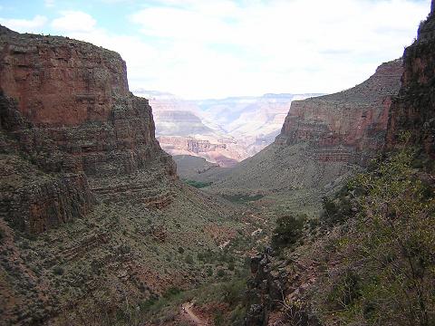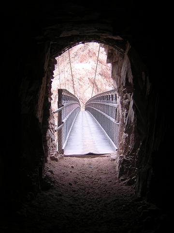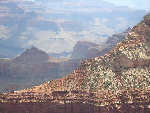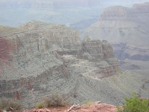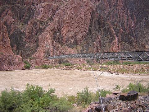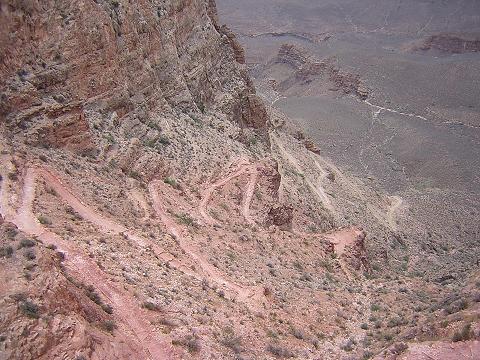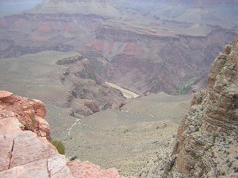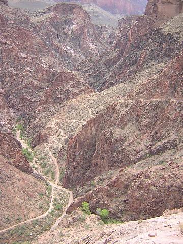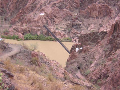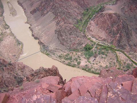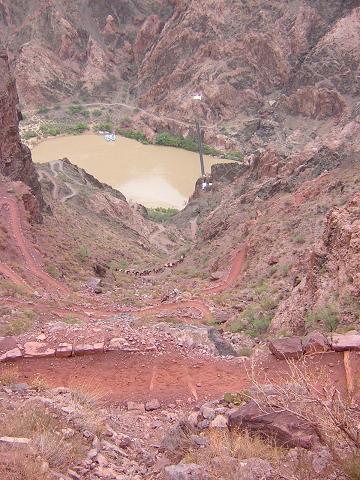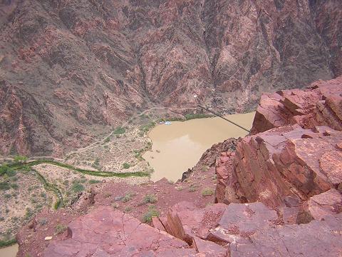 | Looking down (almost straight down!) to the silver bridge and Phantom Ranch. |