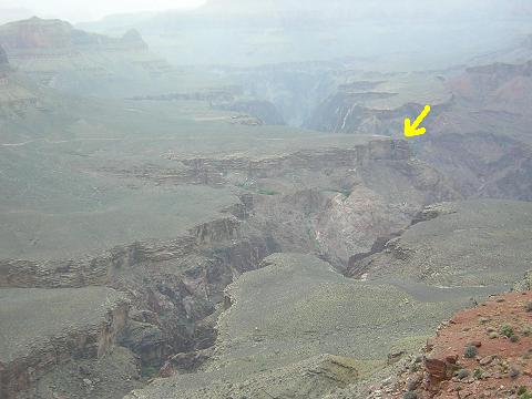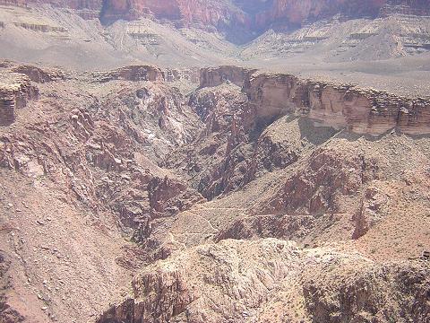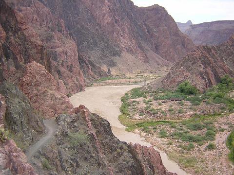 | Getting closer to the river, but still a long way to go. You can see the river trail which I will take to the Bright Angel trail. |