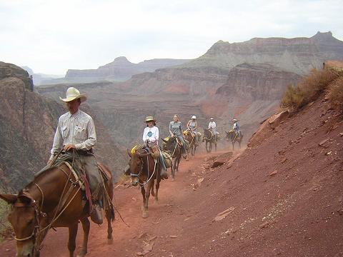 | The first of two pack trains coming up the Kaibab trail as I was descending. |