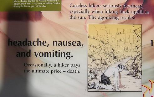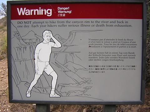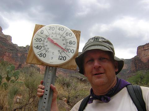 Margaret died just a few weeks before my hike. Many people attempt a rim-to-river-to-rim hike every day. Many have no trouble. Please, be in shape, leave early, carry three times as much water as you think you'll need, wear a brimmed hat, allow plenty of time, and stay on established trails. |