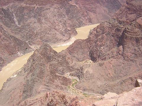 | Colorado River and Bright Angel Trail from Plateau Point. |