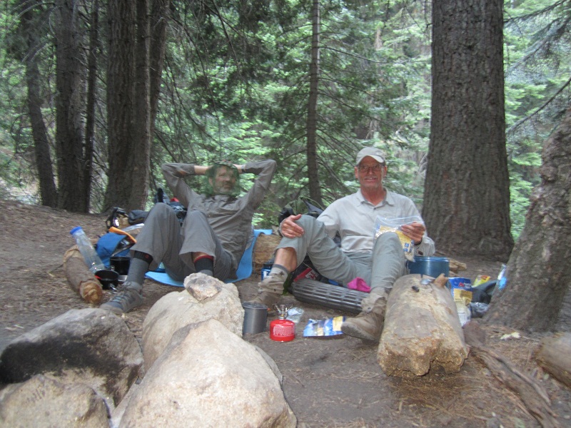 This is Tricia (adventure racer and middle school P.E. teacher) and Don (computer programmer) from Connecticutt. I first saw Don at the creek when I was getting some water. He looked at me and asked if I was doing the John Muir Trail. I told him I was going to try, and he said he had met a woman on the shuttle bus who told him to look for me, and that she was praying for me. How cool is that! Tricia was a few yards downstream as I talked to Don, but I caught her giving me what appeared to be a knowing eye. I assumed she was thinking about the woman Don was referring to. Later I stopped by their campsite to chat, and Tricia asked me "Did you hike this trail last year?" Surprised, I said yes. She then said, "Didn't you write a blog about it?" Now I am quite curious. Yes, I did. She then proceeded to compliment me on my blog (webpage) and to say how helpful it was in planning their trip, including travel logistics (the shuttle bus) and food (last year I mentioned how much I enjoyed Carnation Breakfast Essentials, and that was what she brought since she didn't really care for breakfast.) That was kinda cool! Small world. [049] |