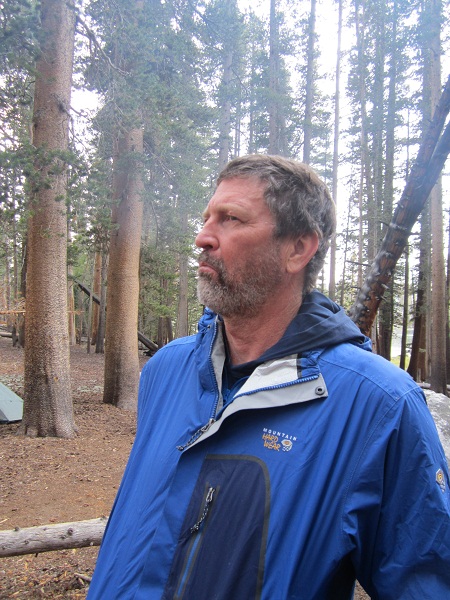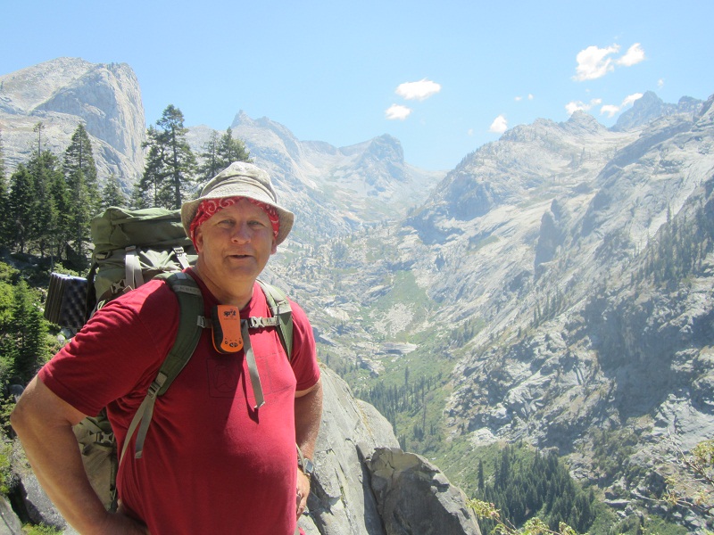 About a mile from the bridge I ran into Murrey. I don't remember his last name, I'm not sure if he ever said. Murrey loved to talk. But as much as he loved to talk, he was also a real good listener. From my journal: "Huddled under a tarp, sitting on the trail, was Murrey. He is 62 years old, has aspbergers, PTSD, disabled from a head injury having been hit from behind while on his bicycle as a kid. Very quirky, very knowledgeable, lots of trail experience. PCT twice I think, JMT many times. Grand Canyon 240 times! Lives in Boston. I lead while he talked. Delightful. We took a break and he sat in the trail while I expressed my concerns and I made my decision to quit. He agreed the apnea is the biggest problem for me. I have been trying to make this "fun" and while some of it is (swim at Dollar Lake) other is just painful (shoulder) and always at a sleep deficit. BTW, my cardio seems good. Anyway, it's 15 miles from here to the trailhead at Roads End in Kings Canyon. From there I will attempt to get a ride to Fresno. Might take 2 days to get there. We'll see. Am I disappointed? Yes, very." I don't know if I will ever see Murrey again, but I hope so. [117] |