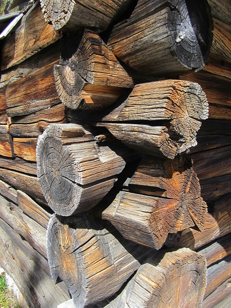 Details of the notched logs on the old ranger cabin at Big Arroyo campsite. [048] |