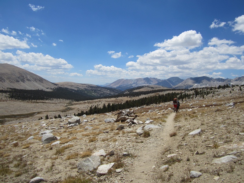 There is a very steep climb to a flat area, which sure felt like it should have been Glen Pass. No, not even close. Follow a ridge above Charlotte Lake, then up some more. Tired. [104] |