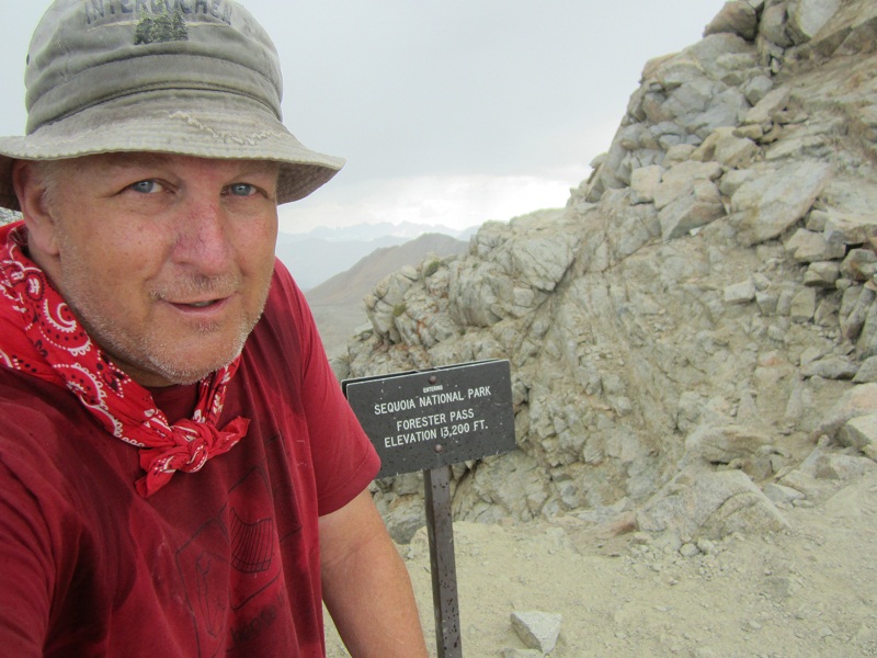 Me on Forester Pass! So excited to be here. No one else is here. But the weather continues to threaten, so I need to get down from here. [096] |