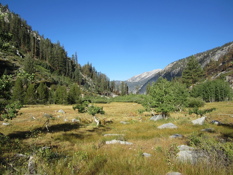 I think this was near Vidette Meadow, where the Rae Lakes Loop meets the John Muir Trail. [103] |