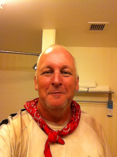 I also worked out at a gym, alone and with a personal trainer. This is my trainer, John Carmell, after my last workout before leaving for my hike. The cellulitis proved to be a big setback, but we did what we could to get me ready again. [003] |