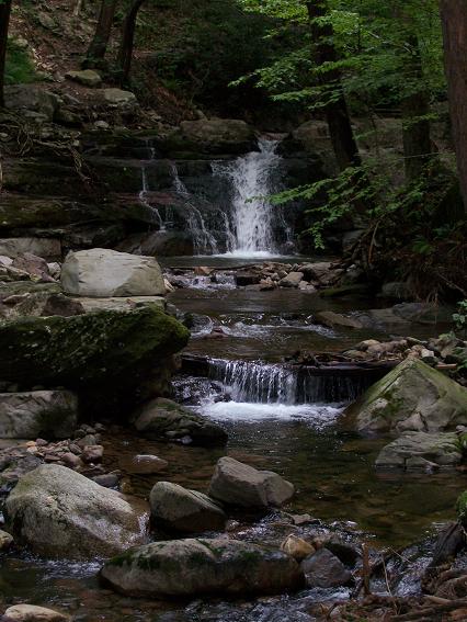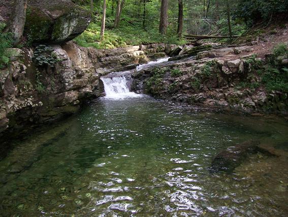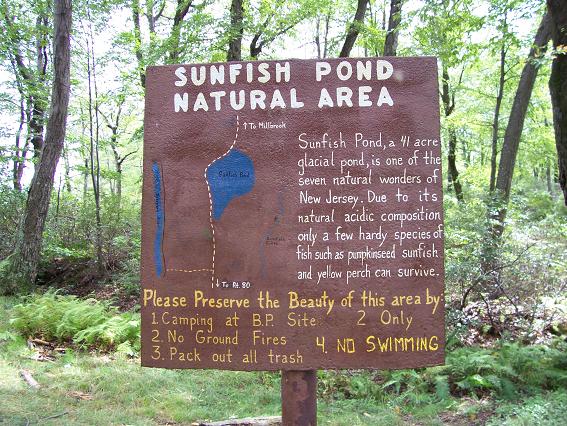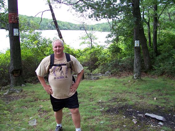 I am currently in New Jersey on business. Due to a change in my client's schedule, I had an unexpected day off on August 31st, so I went for a hike. I drove to Delaware Water Gap National Recreation Area and parked at the Kittatinny Point Visitor Center. From there I hiked parallel to eastbound I-80, through the underpass, then to the right to the rest area where I took the red dot trail to the top of Mt. Tammany. From the top of Mt. Tammany I took the blue dot trail to the Dunnfield Creek trail (green dot), then southwest about a quarter mile to the Appalachian trail. I took the Appalachian trail northeast to Backpacker Site 2 and Sunfish Pond. I then hiked around Sunfish Pond, then took the Dunnfield Creek trail southwest, paralleling and finally joining the Appalachian trail, then to the Dunnfield parking lot, back under I-80, and back to Kittatinny Point. Total about 12 miles in about 8 hours including breaks. Go here for a map of my route and surrounding trails. The weather was overcast, which makes for good hiking but less than perfect pictures. Update June 2007 - I found some links to trail descriptions and maps as PDFs: |