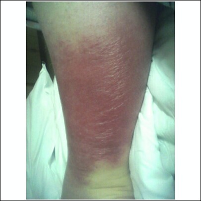 The back of my leg on the following Tuesday (day 11) before being readmitted to the hospital. |