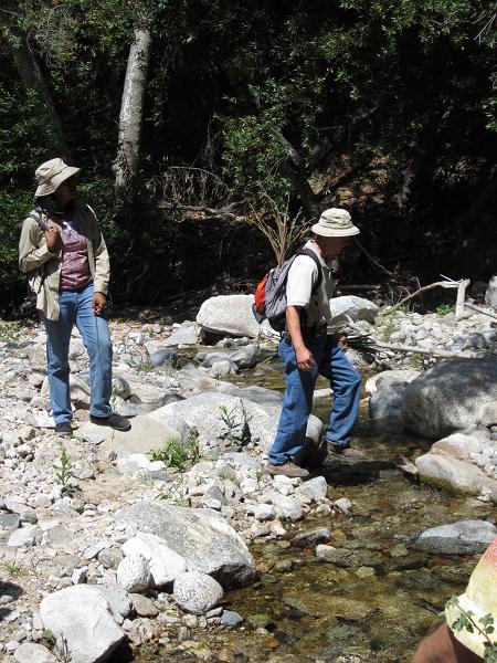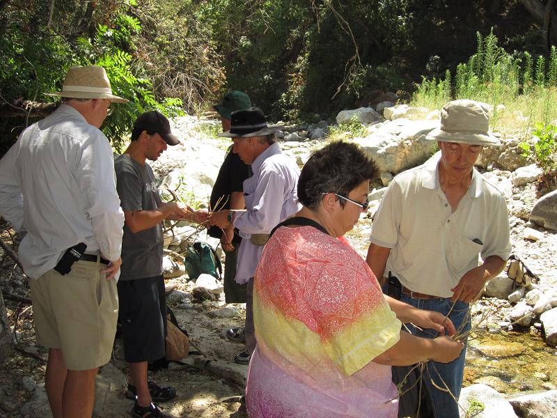This is part 3 of my 2011 vacation (see parts [1], [2], and [4]). Whenever I am in California I try to attend one of Christopher Nyerges' survival walks. These half-day outings in the San Gabriel mountains are very worthwhile. Of particular interest to me on this outing was the identification and sampling of many seeds found within the Arroyo Seco. Seeds are, of course, an important source of protein. I guess I haven't attended one of these outings at this time of year before: the timing was right for learning about the seeds. This is a good example of why you should attend courses of this type at all times of the year: things change! After a few hours the group stopped to learn how to make a net. At that time I took leave of the group as I really wanted to visit Gould Mesa. I'm glad I did. I was pleased to see the area from JPL to Gould Mesa was spared during the devastating Station Fire two years ago, at least the canyon bottoms. But I have to say things looked different than the last time I was here: there has clearly been some significant flooding. |